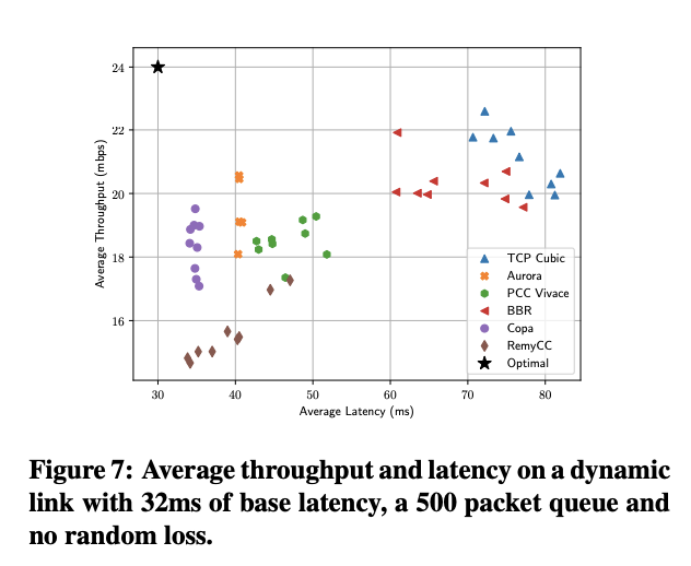 - state-of-the-art (BBR, PCC-Vivace, RemyCC, Copa)를 뛰어넘는 성능을 보여준다. 간단한 neural network 구조와 제한된 트레이닝 환경에도 불구하고.