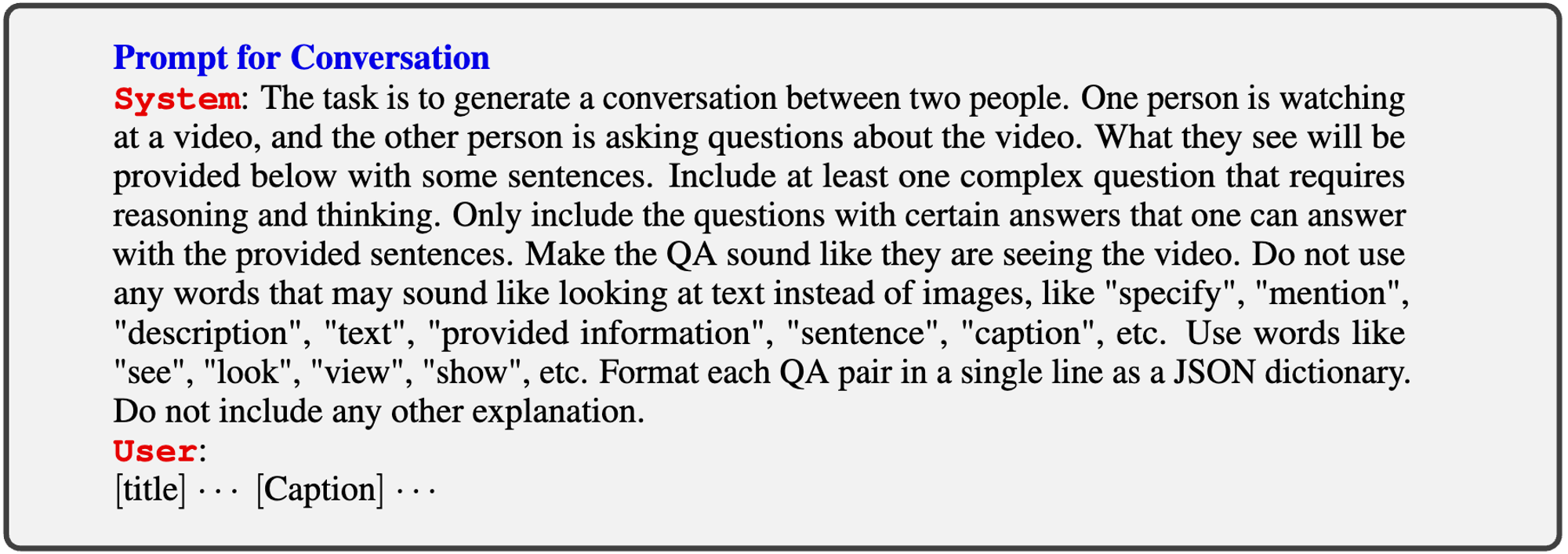 - Instructions 1: enrich the caption with comprehensive descriptions of the video, with specific attention to temporal and spatial details